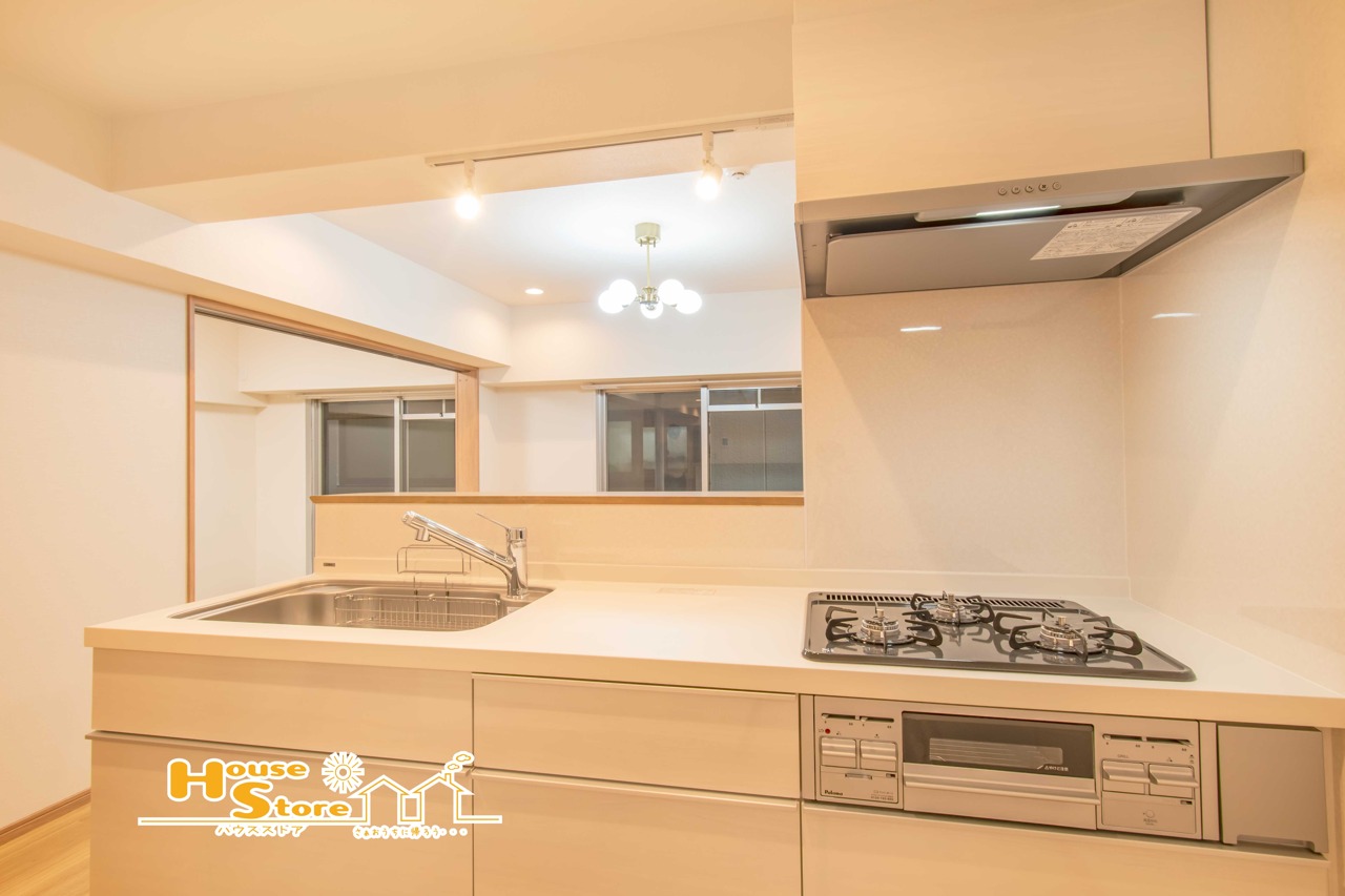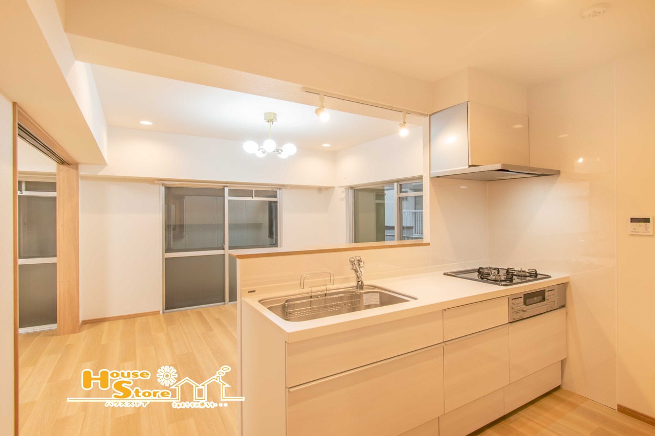 南向きの大きな窓から心地よい陽光がたっぷりと差し込む明るい空間。家事動線に配慮されたカウンターキッチンで、毎日の暮らしがより快適になります。