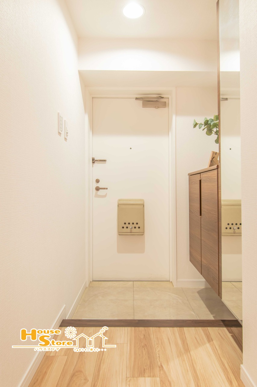 たっぷりの収納付き玄関ならばいつでも整った空間に。鏡付きで身支度がスムーズになり、朝の急ぎの時間でも安心です。