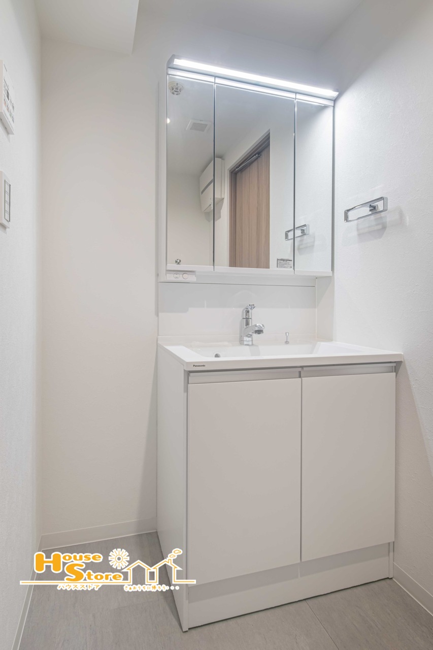 ゆとりの広さを確保した洗面室は、清潔感あふれる洗面化粧台に収納スペースを設けて身支度に忙しい朝もスッキリと使用することができます。