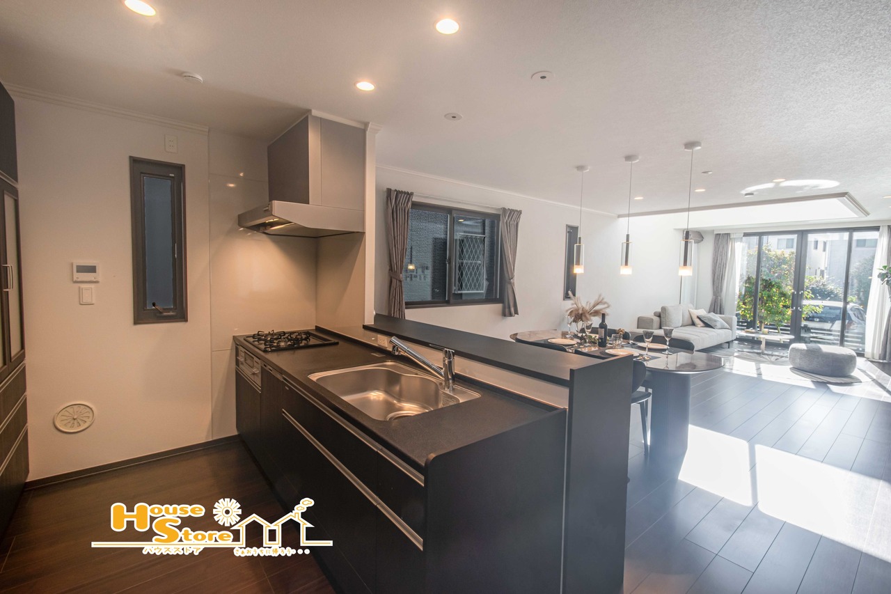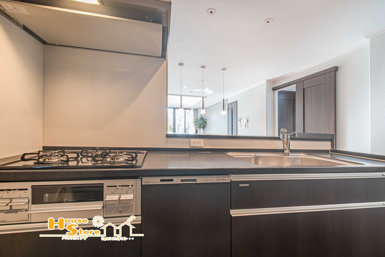 対面式キッチンは食器運びもスムーズになりリビングとの動線も良好になります♪リビングで遊ぶお子様の様子を見守ることもできるためファミリー層にも人気の仕様です。