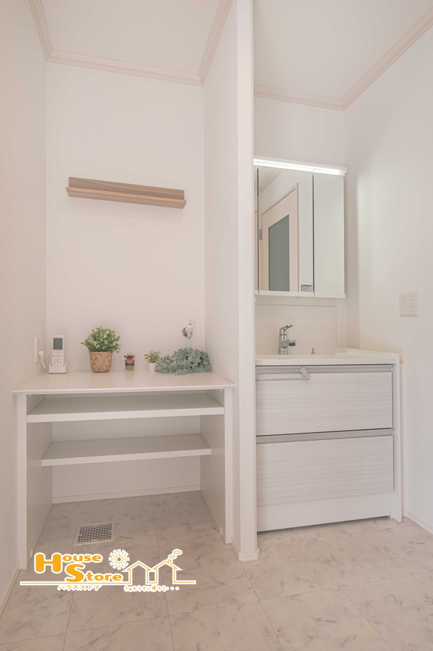 ゆったりとした洗面室は快適な動線を実現!清潔感あふれる洗面化粧台に収納スペースを設けて身支度に忙しい朝もスッキリと使用することができます。
