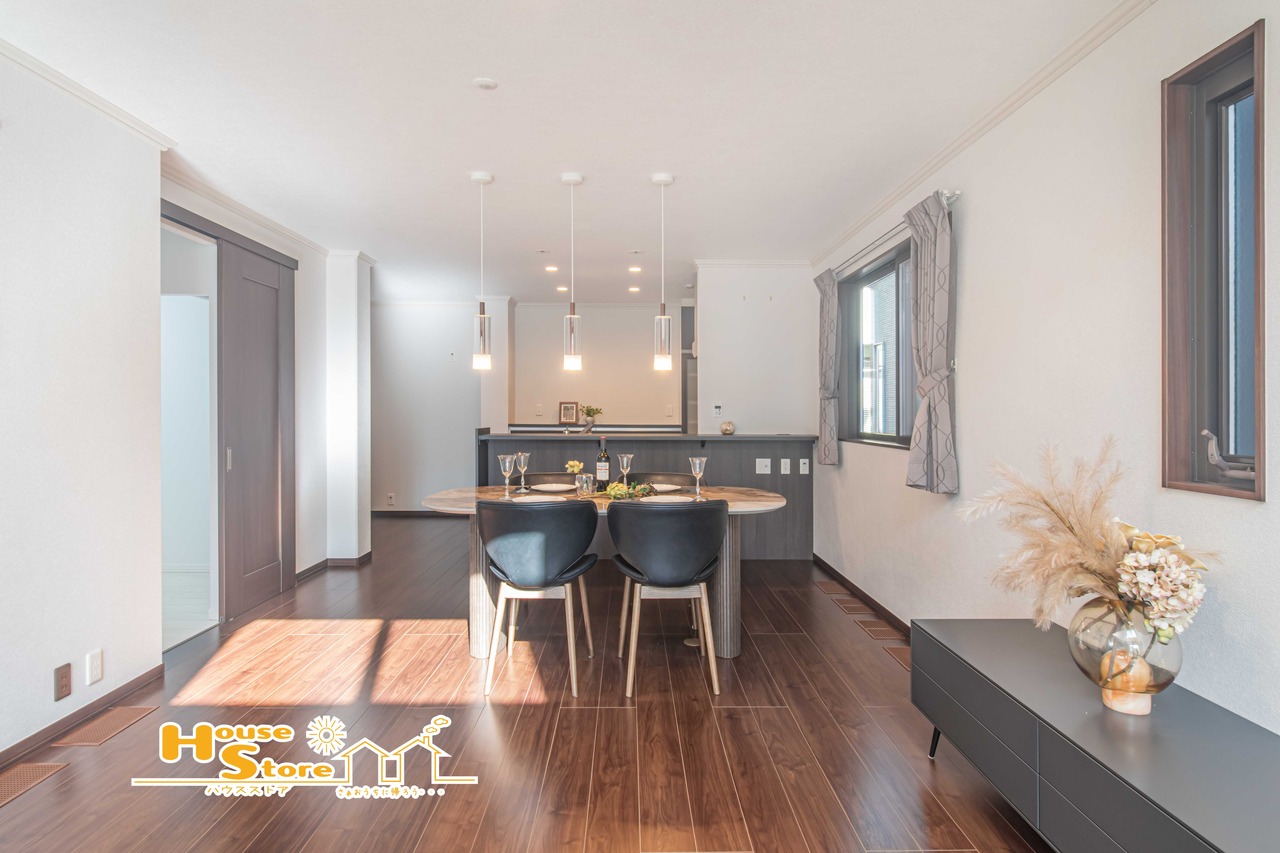 26.4帖のリビング・キッチンはご家族が全員集まってゆったりと過ごせるゆとりの広さ。インテリアを自由に楽しんだり、ご家族やお子様とのひと時を大切にしたり、日常の1ページを彩る素敵な住空間です♪