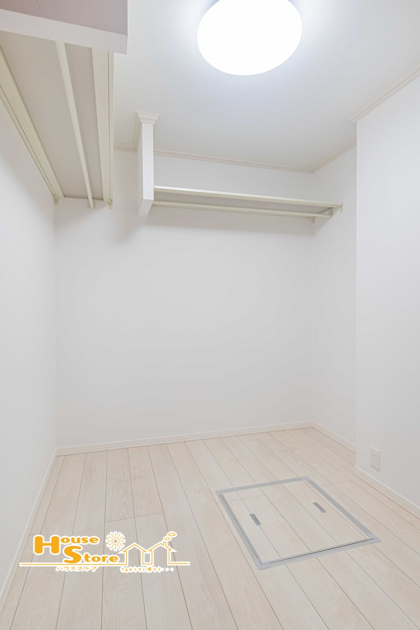 奥行きのあるウォークインクローゼットにはハンガーパイプが設置されており多くの衣類をスッキリ収納!シーズンオフに厚手のコートやシワになりやすい衣服をキレイに収納できるのが魅力的です♪