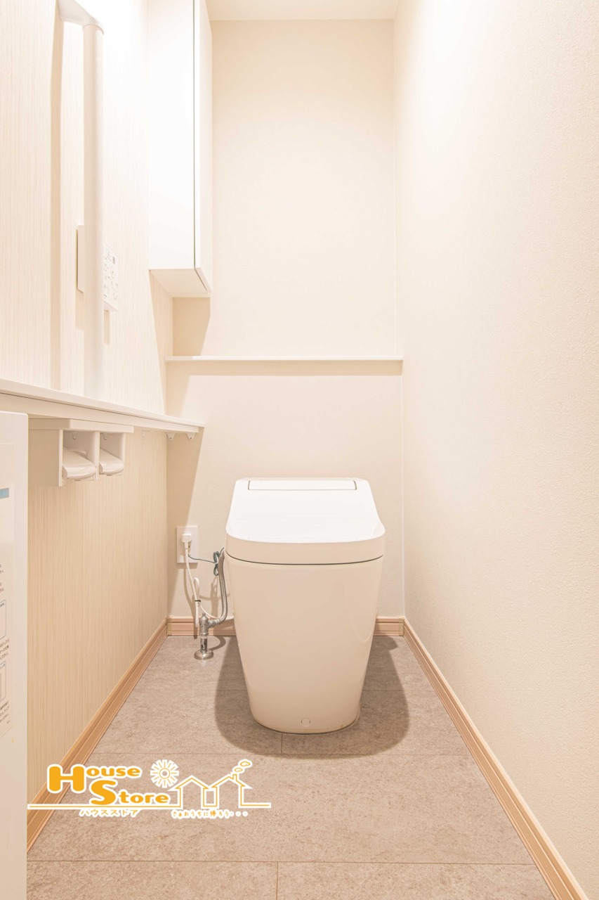 お手洗いが2か所にあるので利用したいときに安心。温水便座はお手入れしやすく清潔で快適に使用できます。収納も充実しているのでトイレまわりをスッキリできます。