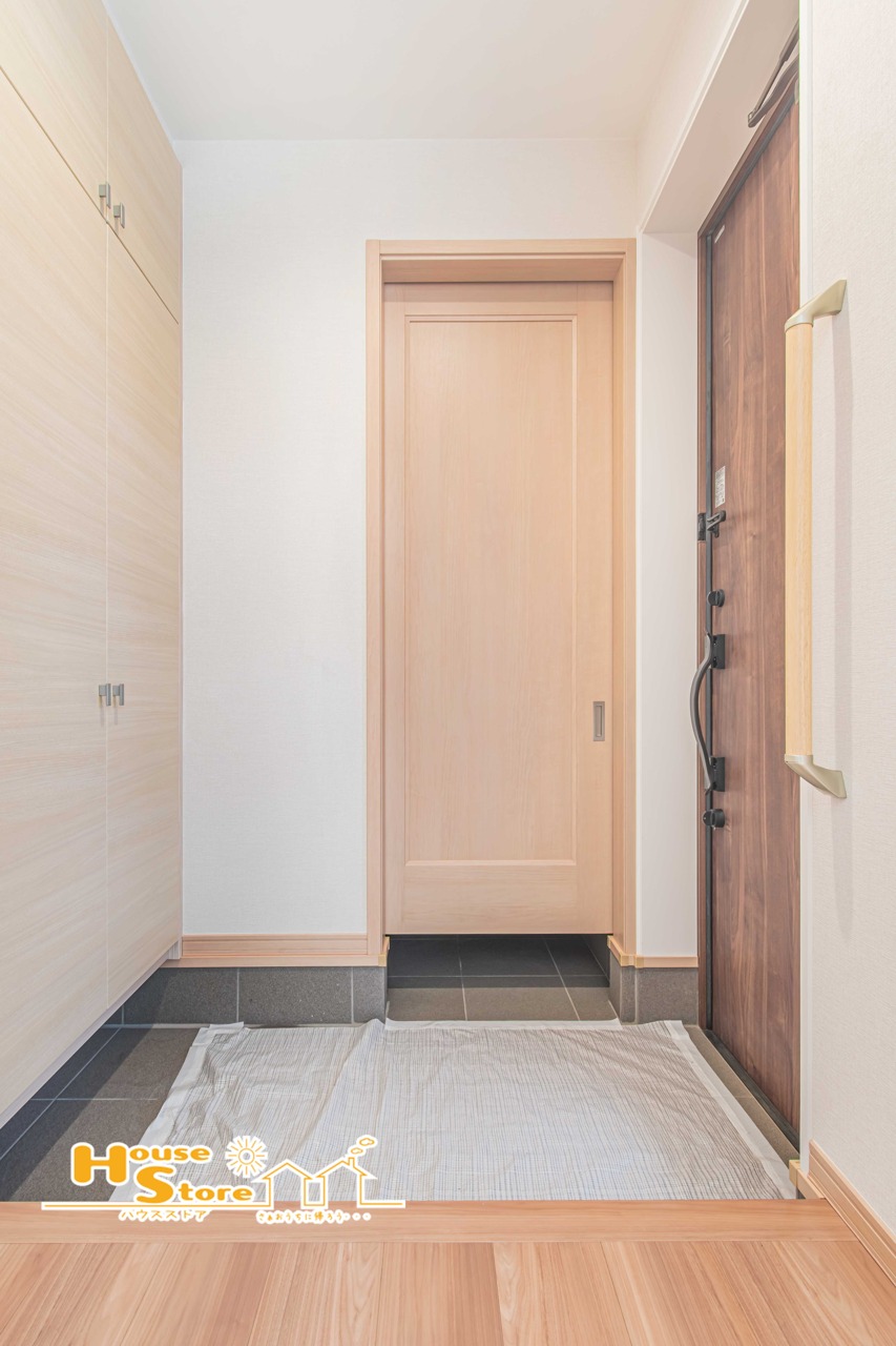 玄関横のシューズインクローゼットは、毎日使う靴はもちろん、レインコートやアウトドアグッズ、ベビーカー、外遊び・スポーツ用具、スコップなどの外出用具もまとめて収納でき、玄関スペースをスッキリ広く使うことができます。