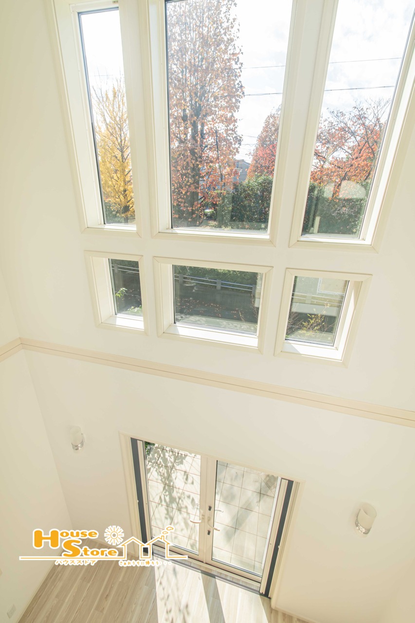 開放的な吹き抜けから日差しが降り注ぐ開放的なリビング。日常に贅沢さと奥深さをもたらします。2階にいる人とのコミュニケーションも円滑に進みます♪