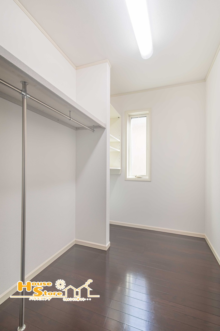 ハンガーパイプ付きの奥行きあるウォークインクローゼット。コートやシワになりやすい衣類も美しく収納可能です。