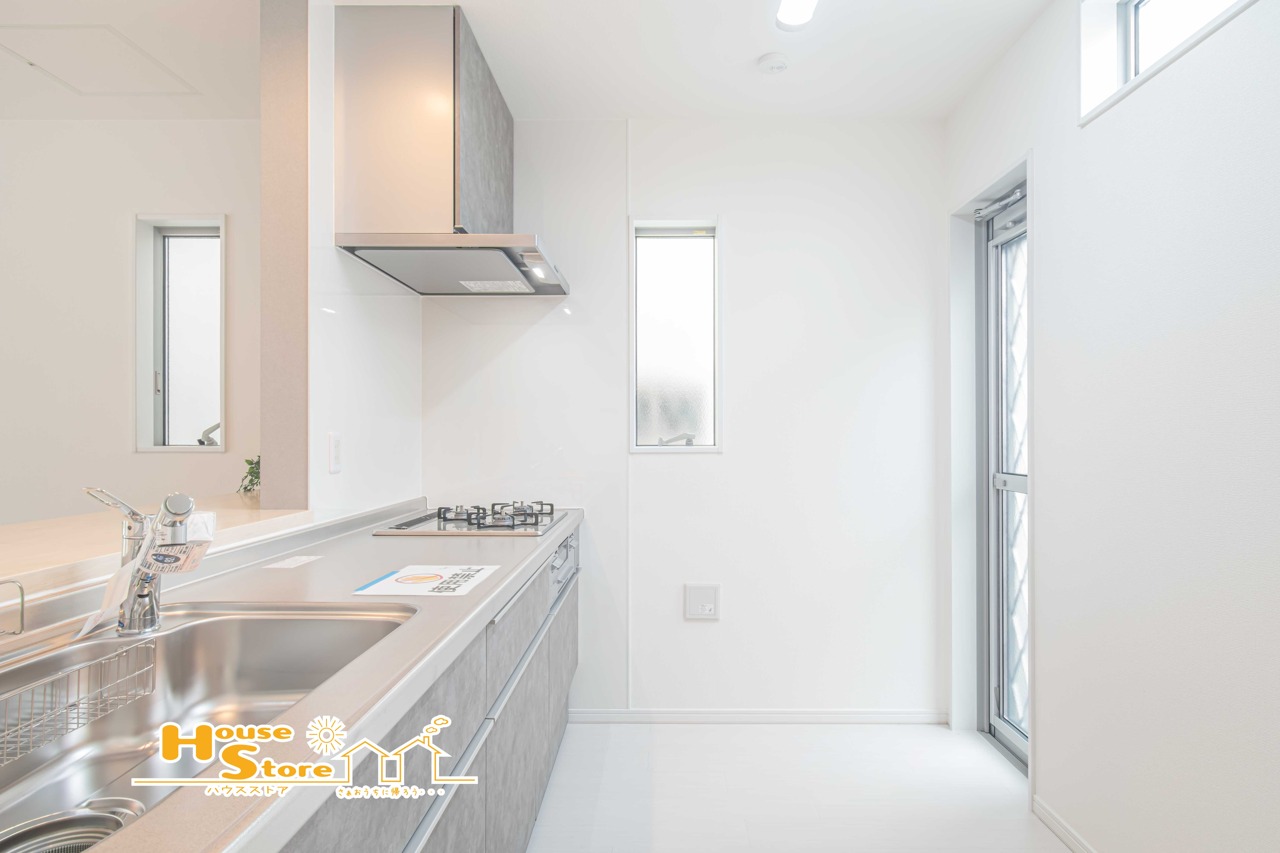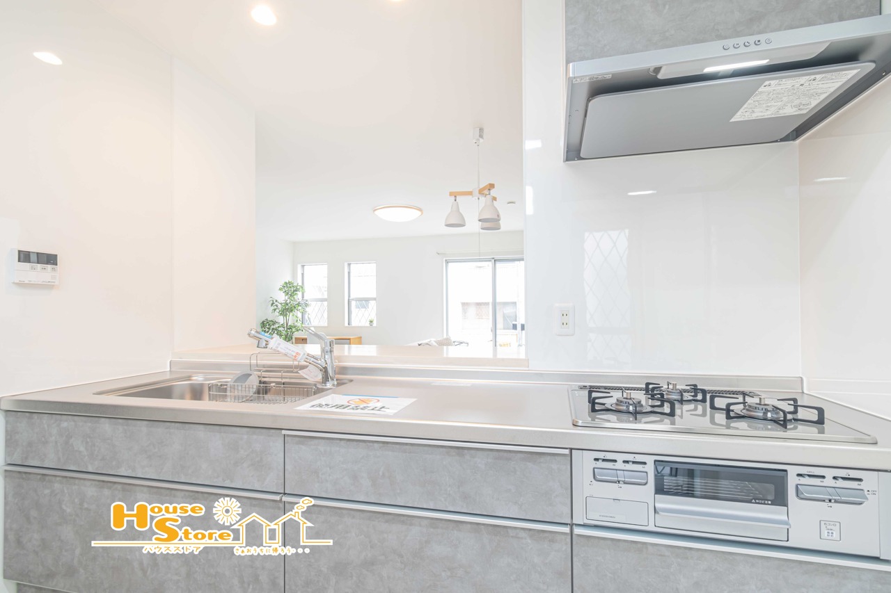 対面式キッチンは食器運びもスムーズになりリビングとの動線も良好になります♪リビングで遊ぶお子様の様子を見守ることもできるためファミリー層にも人気の仕様です。