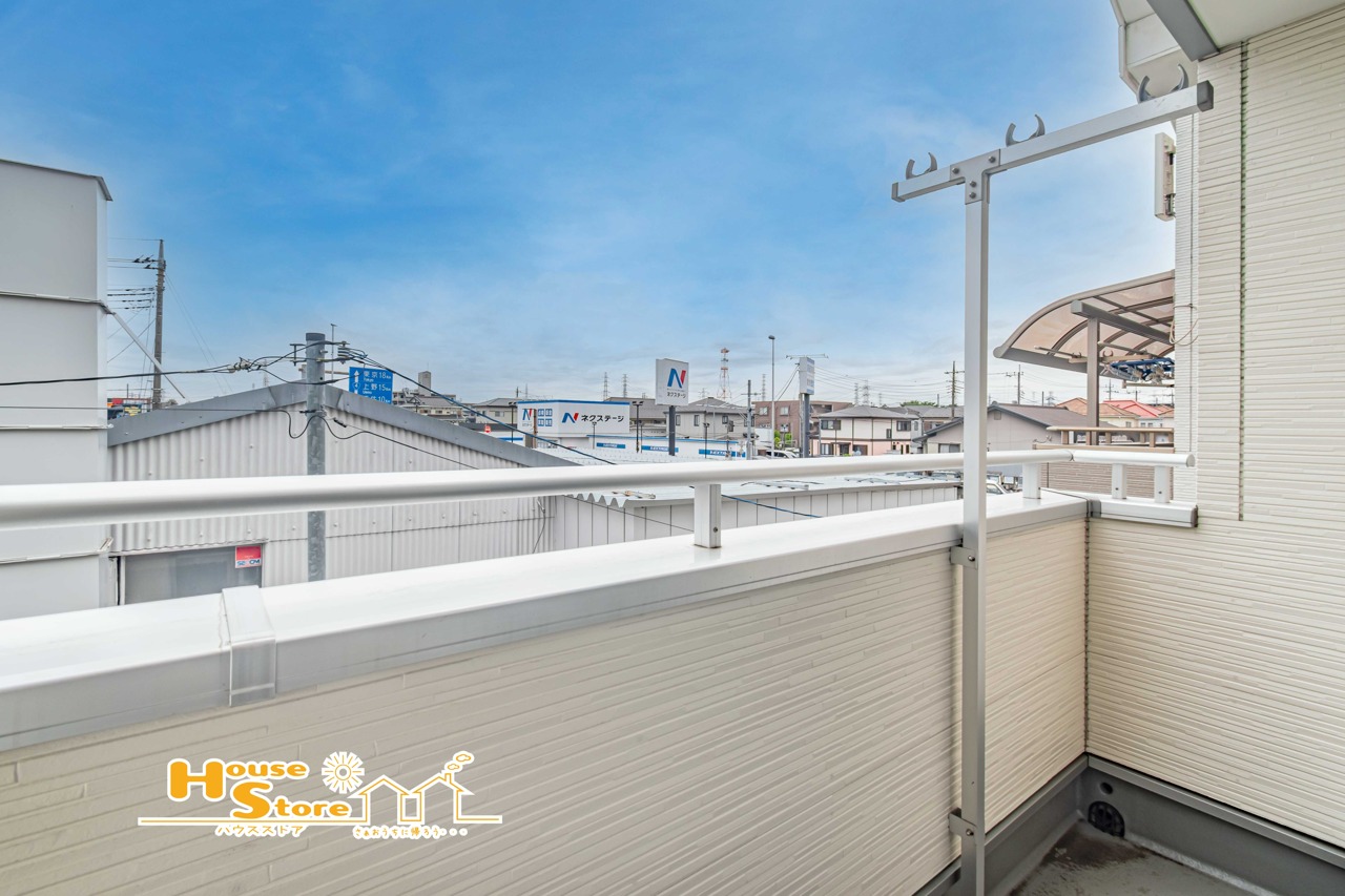 広々とした南向きバルコニーはたっぷりの陽光に恵まれ、青空の下でお洗濯物もお布団もフカフカに乾かせます♪