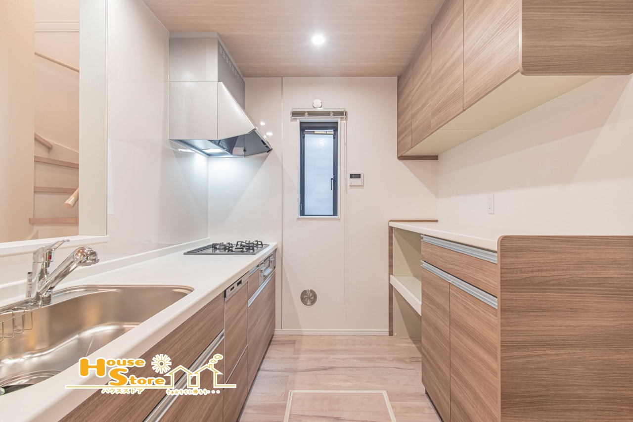 背面収納にこだわったカウンターキッチン。動きやすい家事動線とたっぷりの収納で、毎日のお料理がより快適になります。