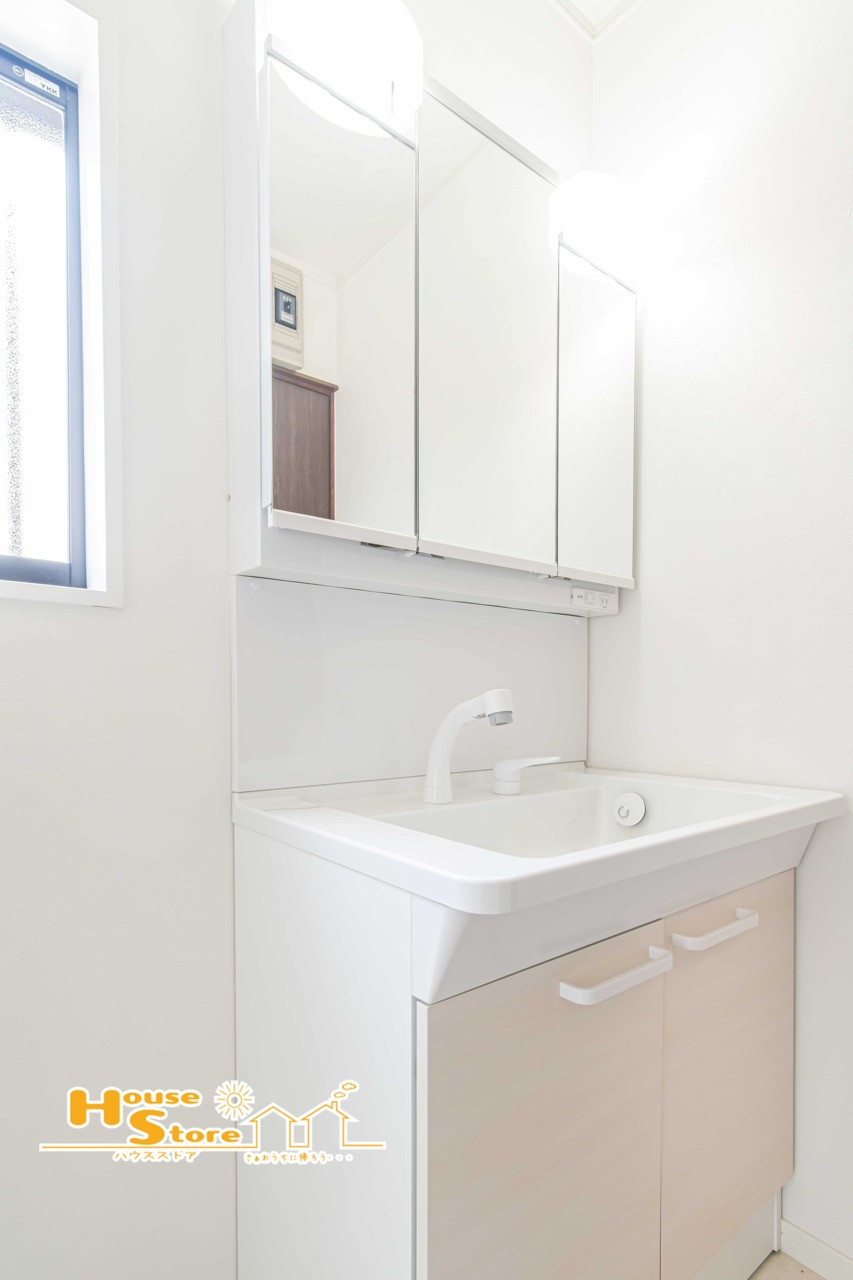 ゆとりの広さを確保した洗面室は、清潔感あふれる洗面化粧台に収納スペースを設けて身支度に忙しい朝もスッキリと使用することができます。