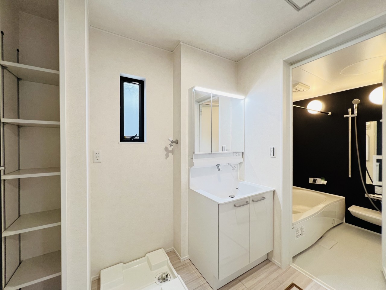 洗面室は豊富な収納でタオルや洗剤などの日用品、お着替えなどもすっきり片付きます。物がキレイにまとまり日々の清掃もスムーズにできます。