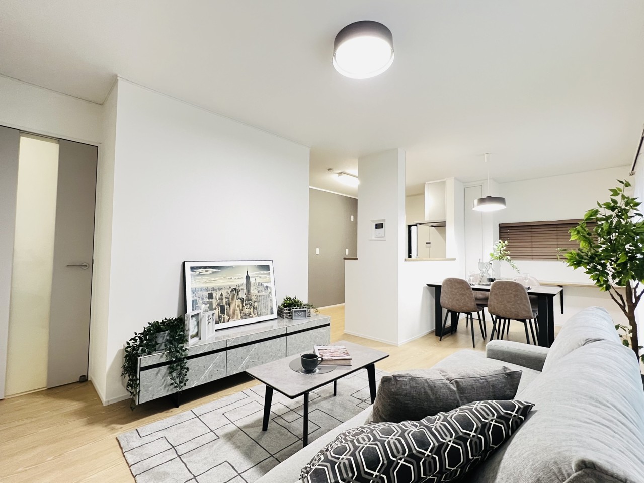 15帖のリビングはご家族そろってゆったりと過ごせるゆとりの広さ。インテリアを自由に楽しんだり、ご家族やお子様とのひと時を大切にしたり、日常の1ページを彩る素敵な住空間です。