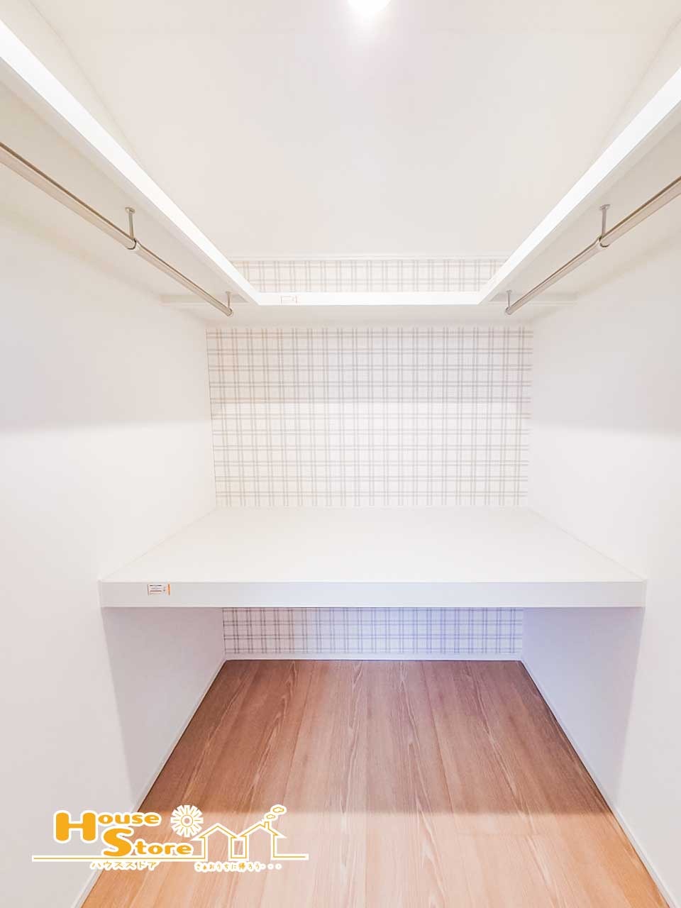 奥行きのあるウォークインクローゼットにはハンガーパイプが設置されており多くの衣類をスッキリ収納できます。シーズンごとに着なくなるコートやシワになりやすい衣服をキレイに収納できるのが魅力的です。