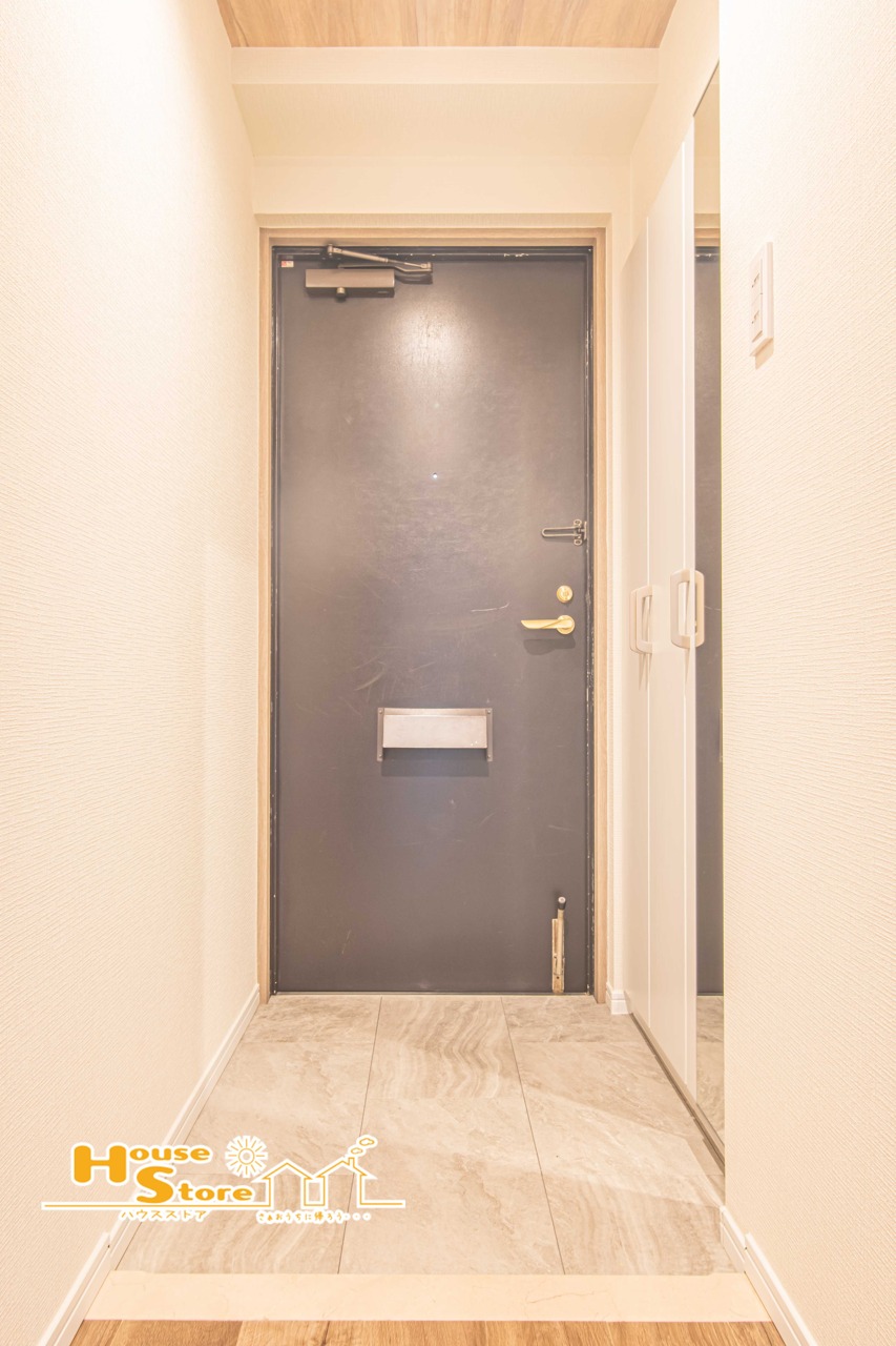 玄関に豊富な収納スペースがあるのはうれしいですね。鏡付きだからお出かけ前の身だしなみチェックもOK♪