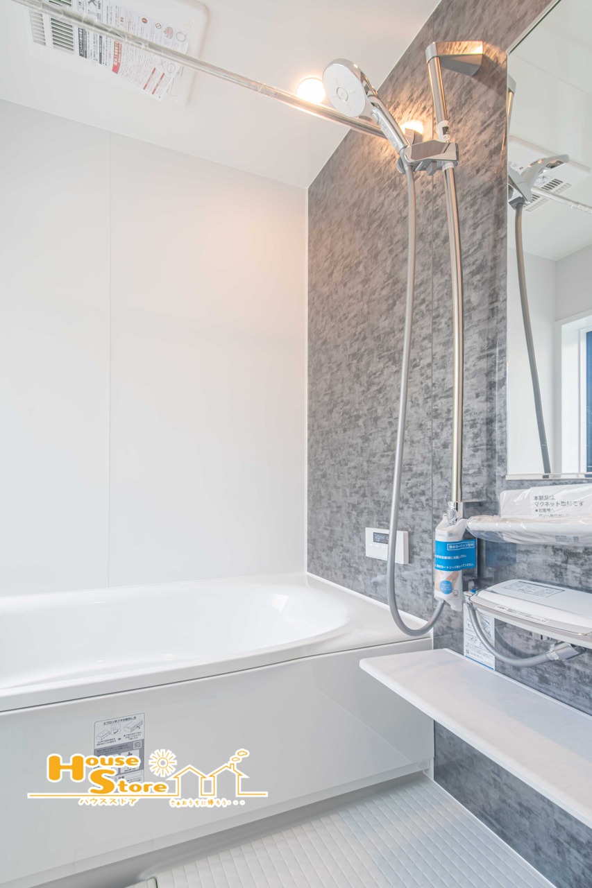 シンプルで清潔感のあるユニットバスは、毎日のお手入れがしやすく快適にご利用いただけます。浴槽はゆったりとしたサイズ感で、一日の疲れを癒すリラックスタイムに最適です。