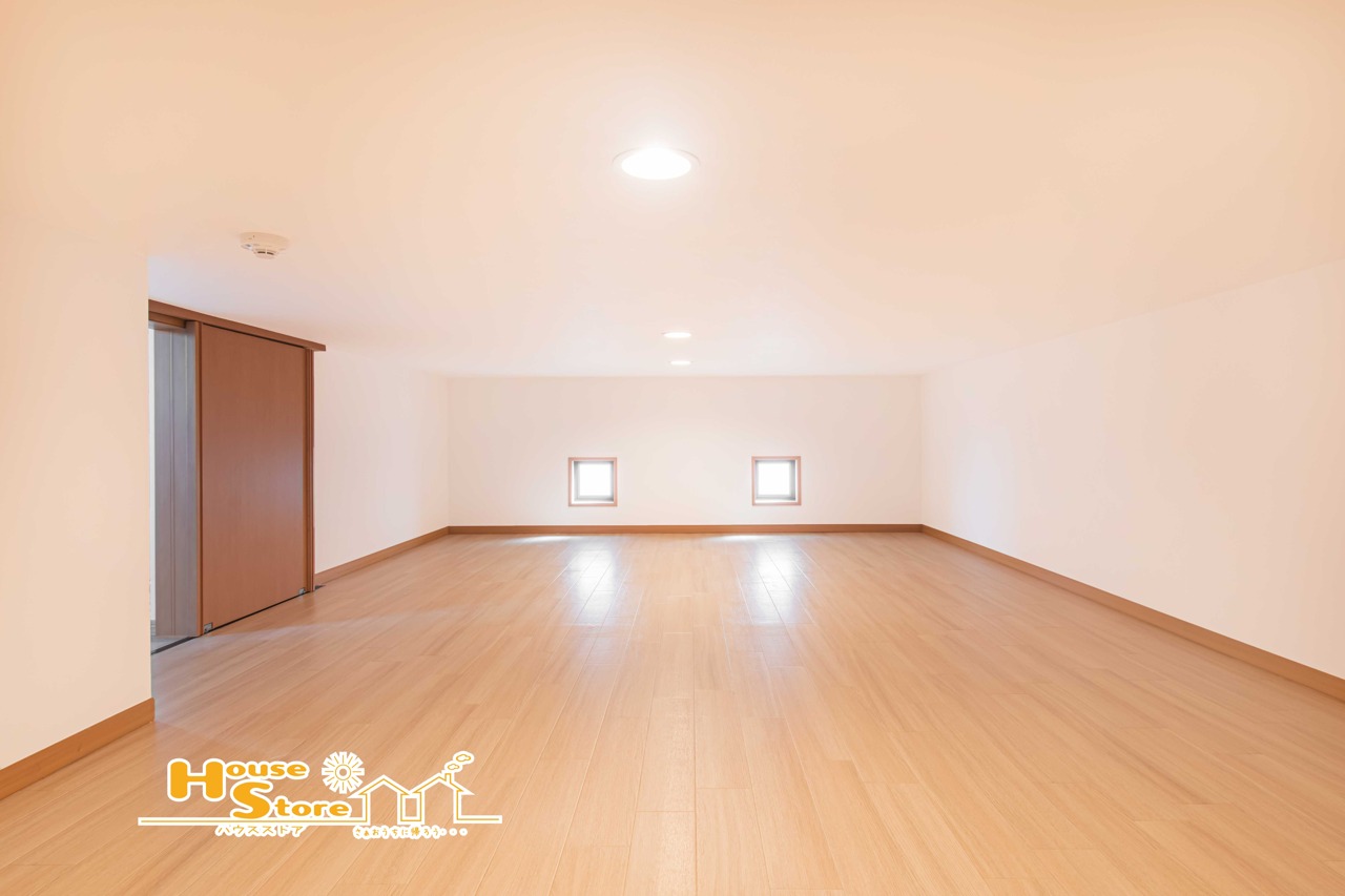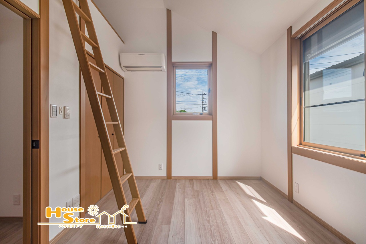 窓が2面にあり自然光が差し込む明るいお部屋は、蔵へ続くはしごが備わっており、収納や趣味のスペースとして便利に使えます。光が行き渡る開放的な空間で、快適に過ごせます。
