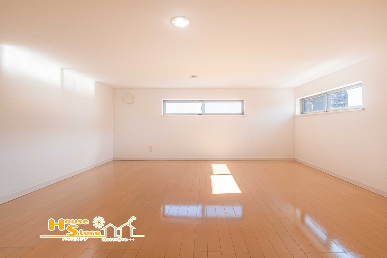 約9.5帖の広々とした小屋裏収納。季節家電やアウトドア用品などの大きなお荷物から日用品のストックまで場所を選ばずたっぷり収納でき、住空間をいつでもすっきり整えられます。