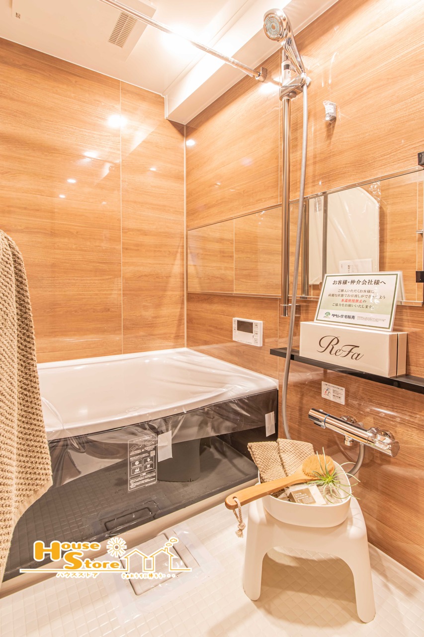 追い焚き機能付きで、入浴時間がずれてもいつでも温かいお風呂を楽しめます。さらに浴室乾燥機を備え、雨の日の洗濯やカビ・湿気対策にも便利。機能性と快適性を兼ね備えたバスルームです。