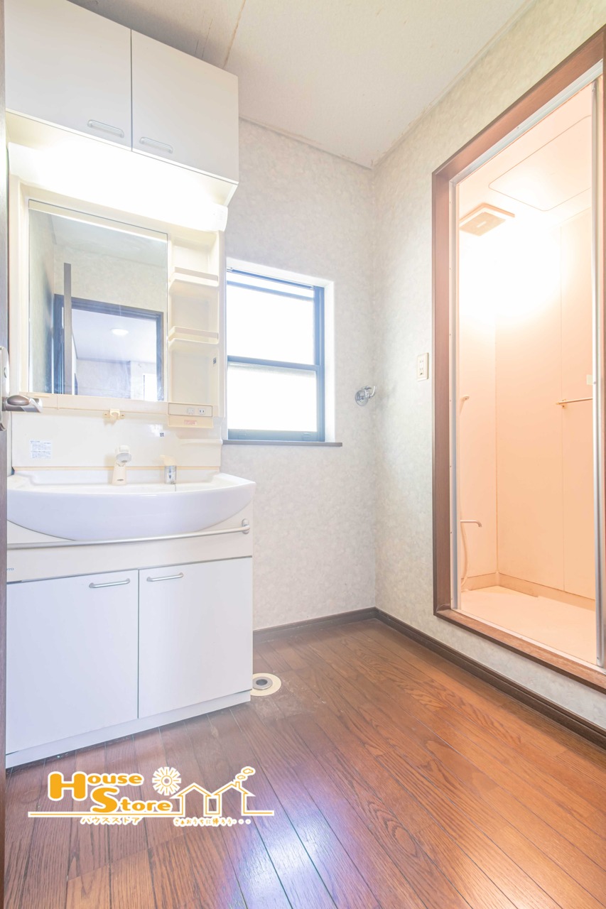 ゆとりの広さを確保した洗面室は、清潔感あふれる洗面化粧台に収納スペースを設けて身支度に忙しい朝もスッキリと使用することができます。