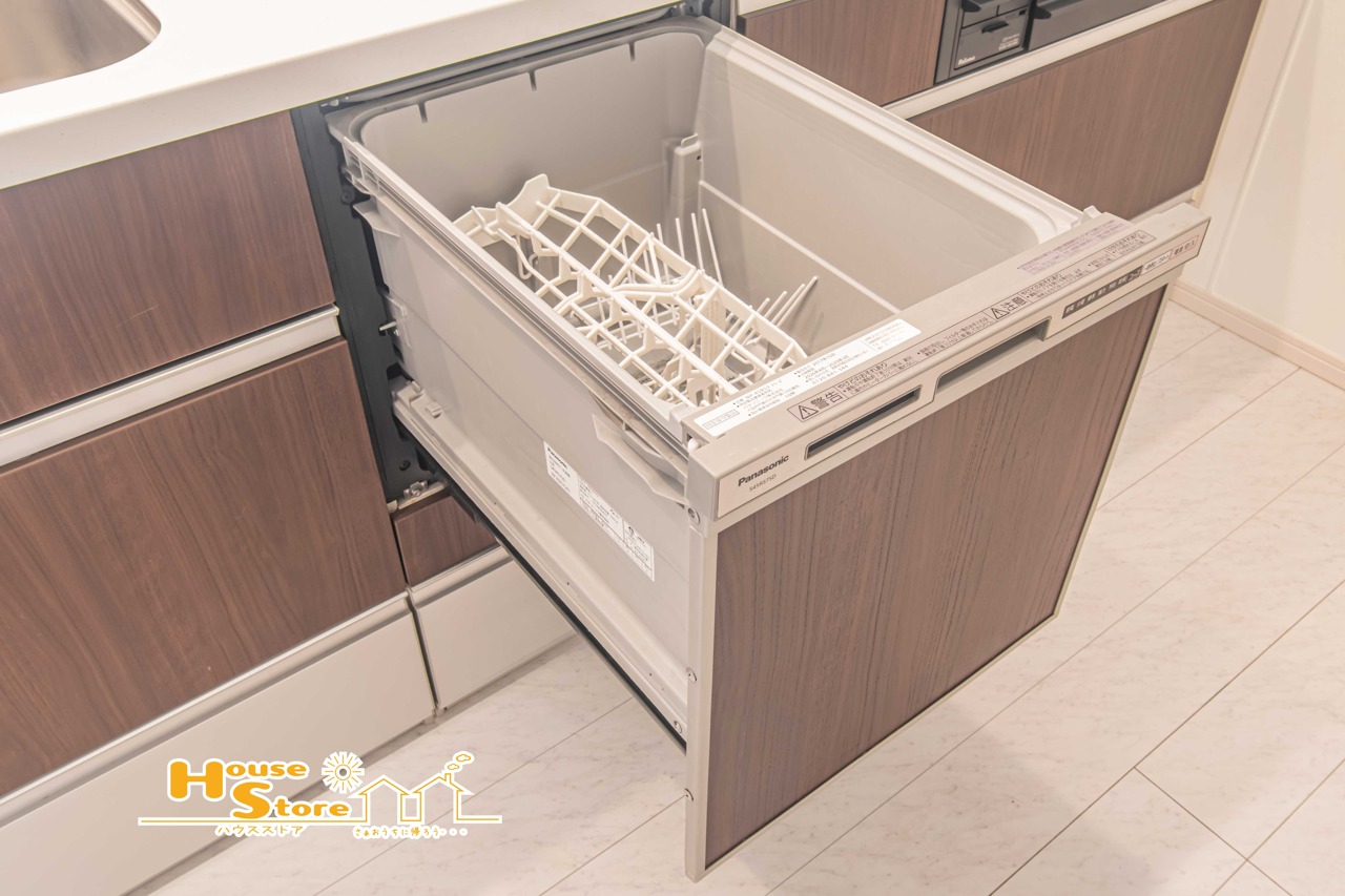 食器洗浄機により洗い物の手間もスッキリ解消!効率よく家事を進められるだけでなく、洗剤による肌荒れを避けたい方にも最適な設備です。