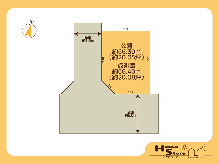 | 接道 | 南側6M公道に接道 西側4M私道に接道 |