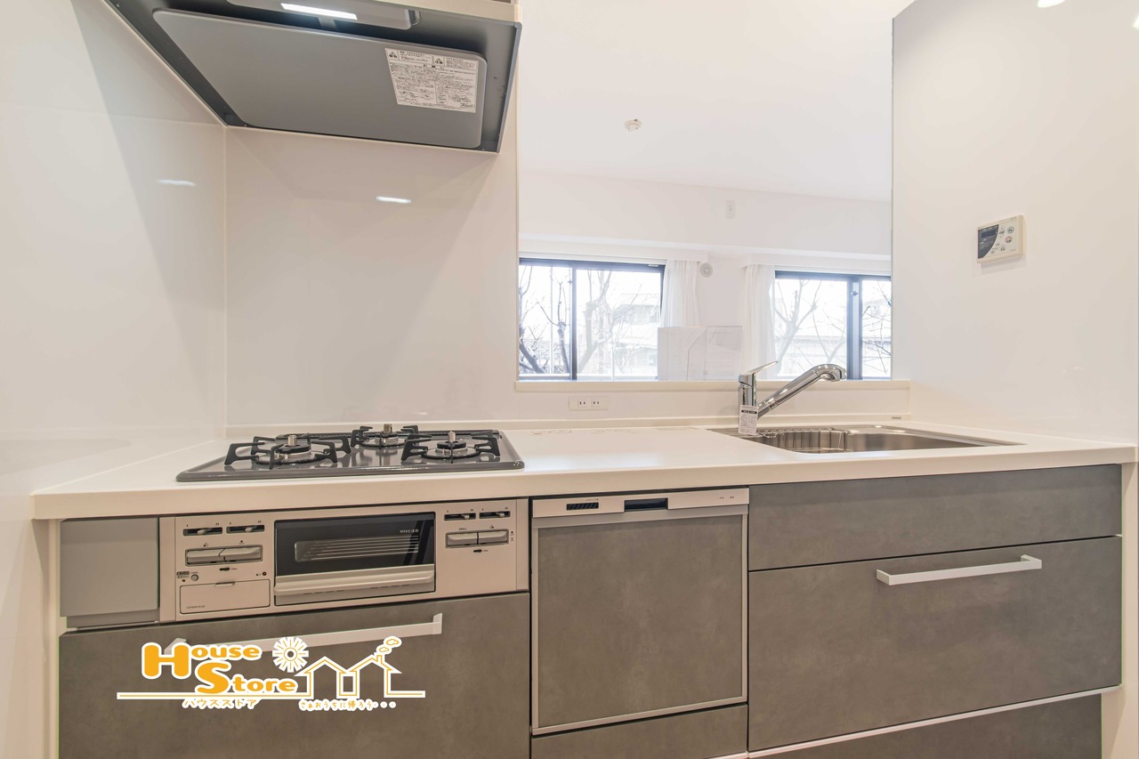 3口コンロで同時調理ができ、食洗機で後片付けもラクに。家族との時間を大切にしながら、毎日の調理を快適に楽しめるシステムキッチンです。