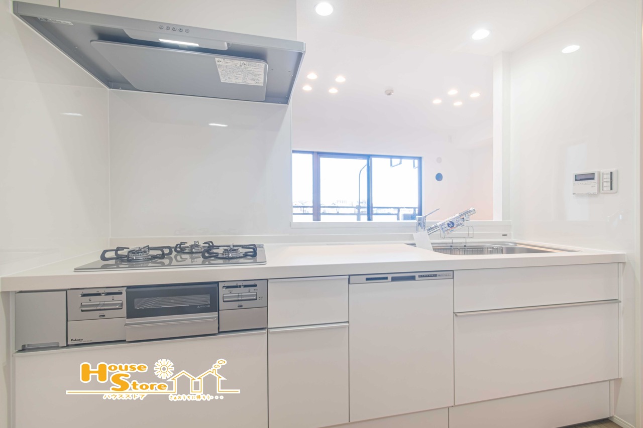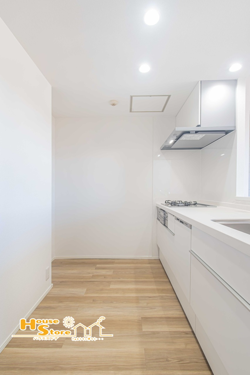 新規交換されたシステムキッチンは、作業しやすくお手入れも簡単。カウンターキッチン設計によりリビングとの行き来もスムーズで、快適な暮らしをサポートします。