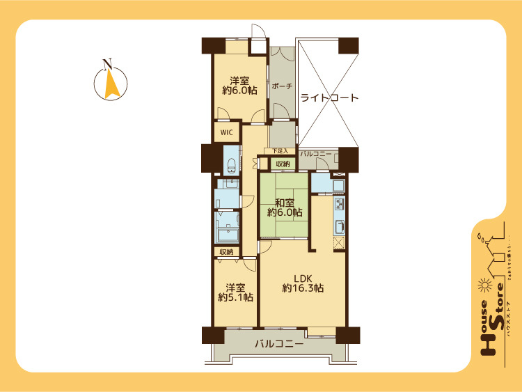 | 間取 | 3LDK + 洋6×1・洋5.1×1・和6×1・LDK16.3×1 | ||