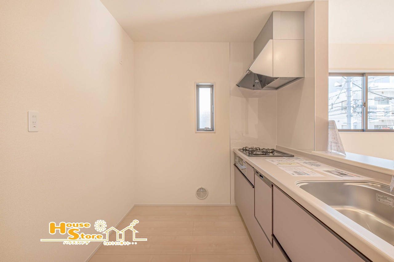 1号棟 広々としたカウンターキッチンには食器洗浄乾燥機を完備。ワンタッチ操作で食器洗いから乾燥まで行える、家事の負担を軽減してくれる便利な設備です。