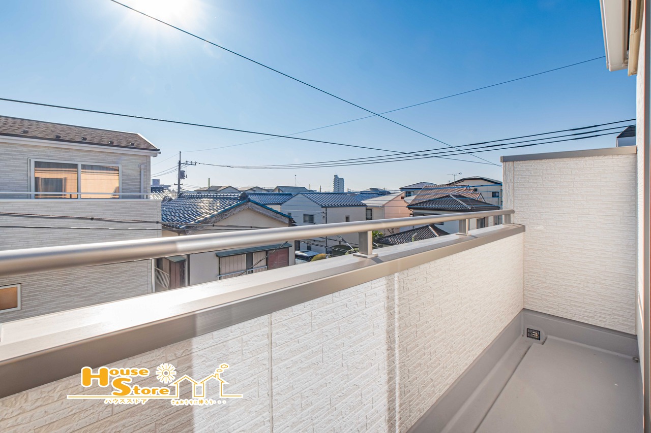 2号棟 南東向きで広々とした3階バルコニーは、陽当たりと開放感に恵まれた心地よい空間。洗濯物を干すだけでなく、くつろぎの時間を楽しむ場としても活用できます。
