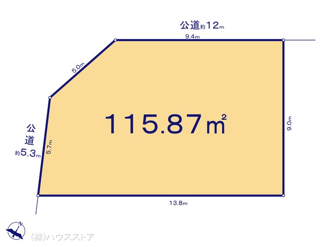 | 接道 | 北側12M公道に接道 西側5.3M公道に接道 |