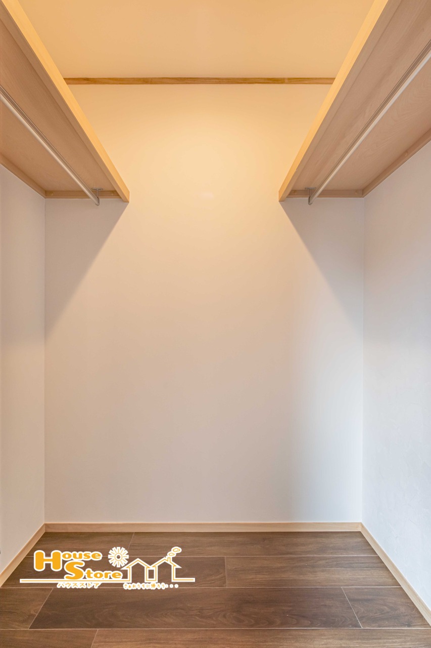 WICは、大きな荷物から季節の衣類までまとめて収納できる便利な空間。上部棚とハンガーラックを備えており、荷物に合わせて使い分けができ、居住空間をすっきり保ちやすくなります。