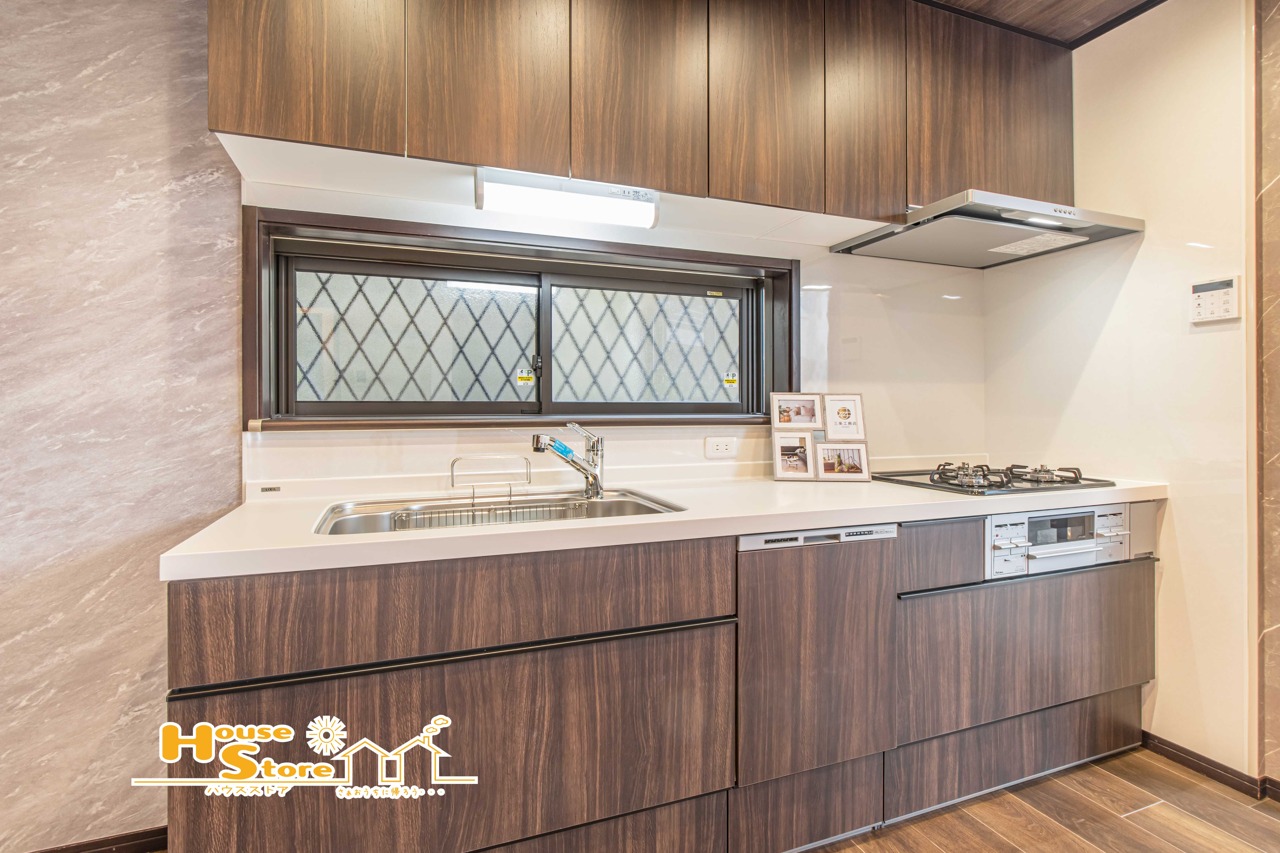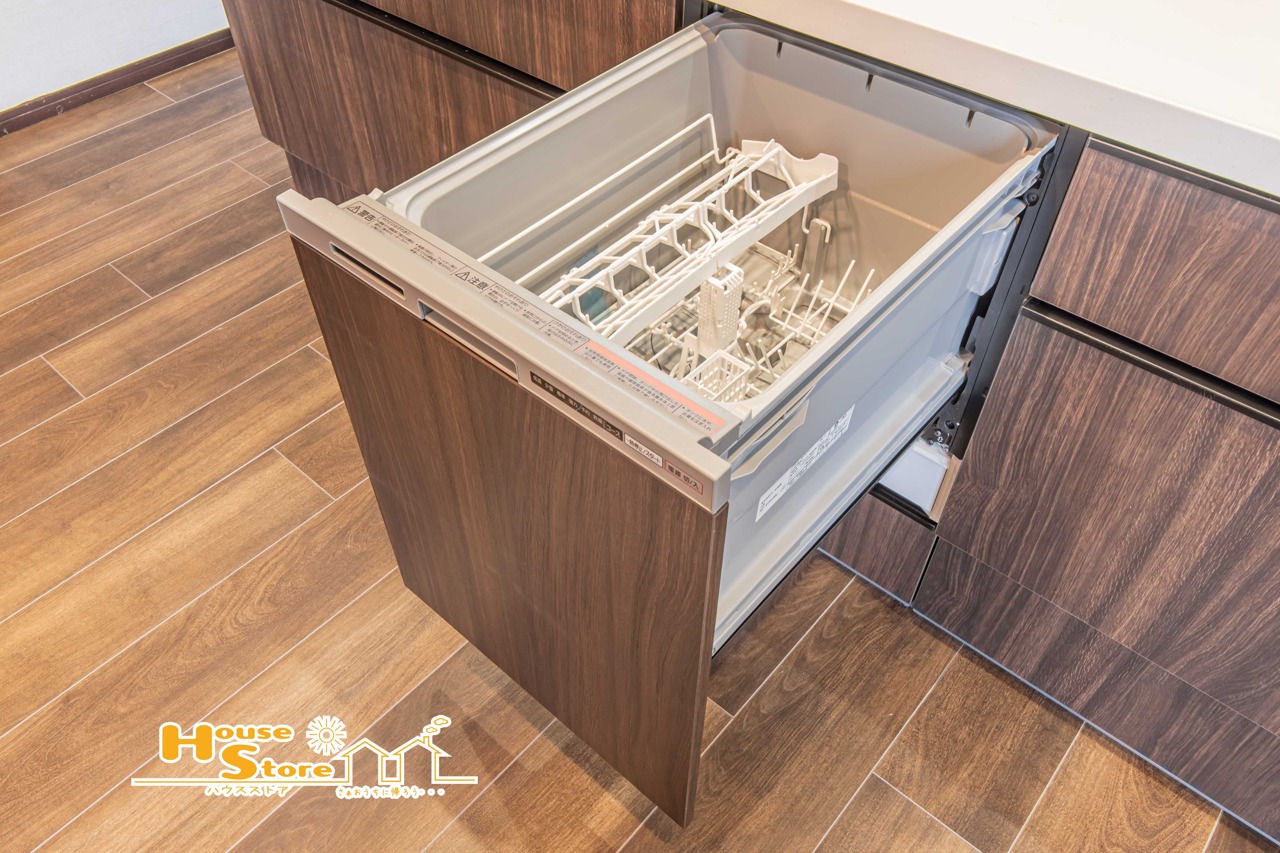 食洗機付きで後片付けも効率よく行えます。ビルトインタイプのため見た目もすっきりしており、キッチン空間を広く使える嬉しい設備です。
