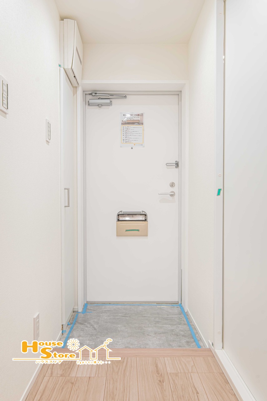 すっきりとした玄関空間。扉付きの玄関収納により生活感を抑え、整った印象を保てます。毎日の外出や帰宅を心地よく迎え入れてくれる、やさしい設計です。