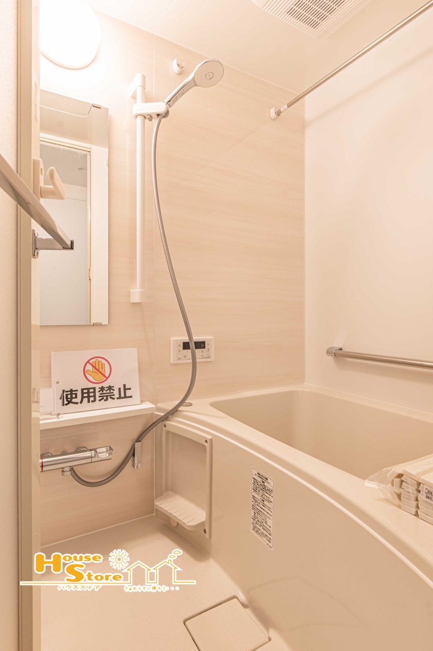 オートバス機能を備えた浴室で、手軽に快適なバスタイムをお過ごしいただけます。追い焚き機能も備わり、ご自身のタイミングでゆったりと入浴を楽しめる、使い勝手の良い仕様です。