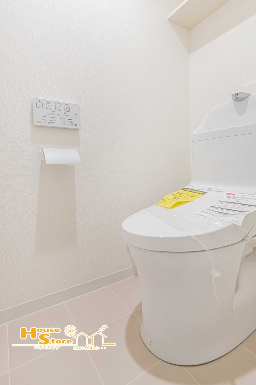温水洗浄便座を備えた清潔感のあるトイレ空間。日々快適に、安心してお使いいただける心地よい環境です。