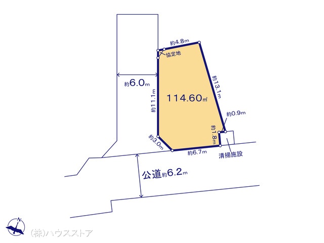 | 土地面積 | 114.17m² ~ 114.6m² 実測 (私道122.21m²~122.21m²別に有) | ||