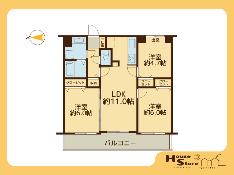 | 間取 | 3LDK + LDK11×1・洋6×1・洋6×1・洋4.7×1 | ||