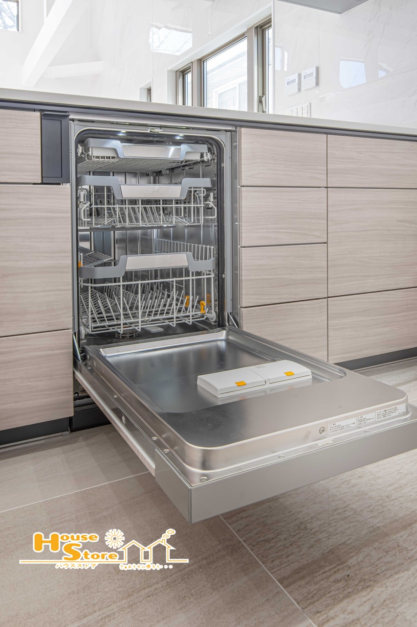 洗い物の負担や水洗いによる肌荒れも、食器洗浄機があれば安心。ビルドインでスペースを取らず、手間のかかる後片付けを任せられる、忙しい毎日に心強い設備です。