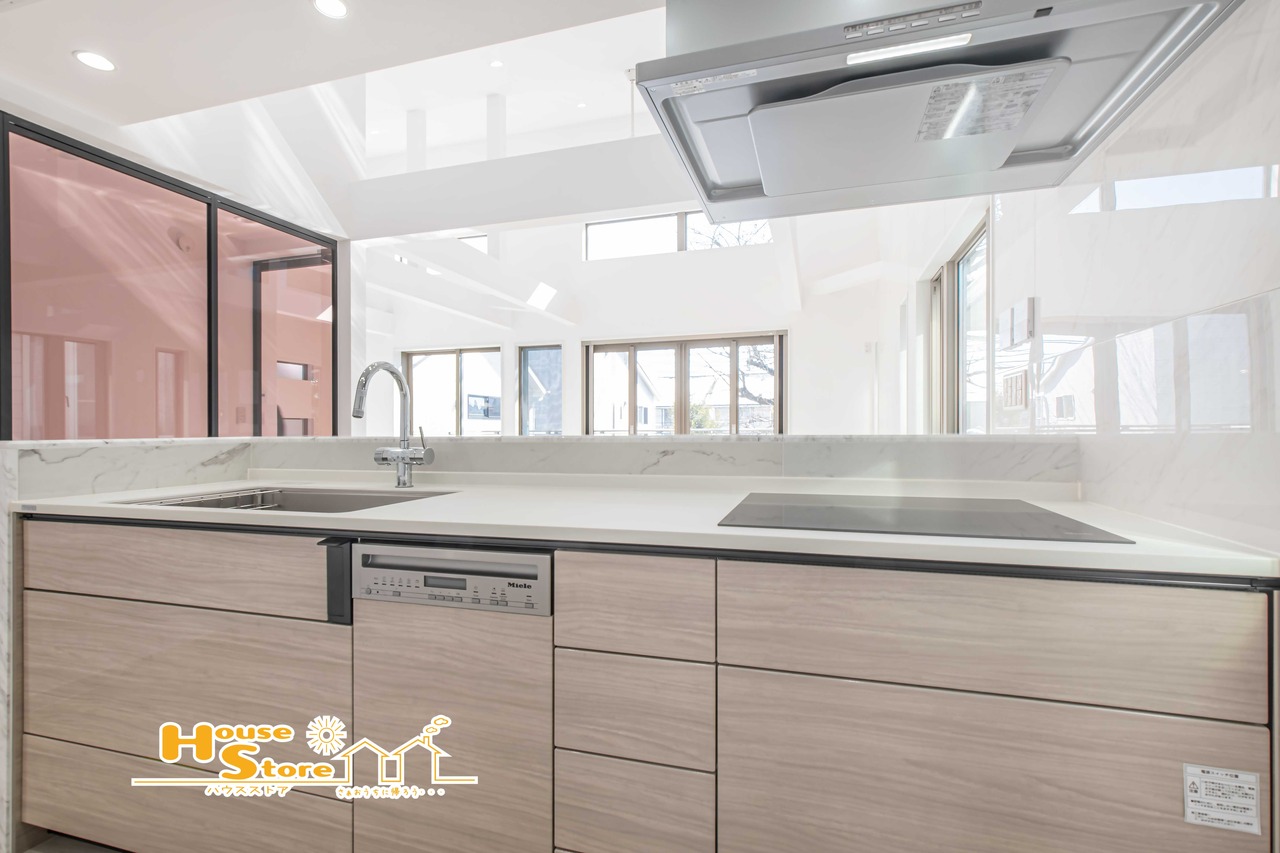 ダイニングと向き合う対面式キッチンは、家事動線を効率化し、配膳や片付けを快適に。日常のひとときも心地よく過ごせる空間です。