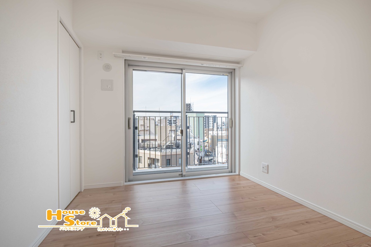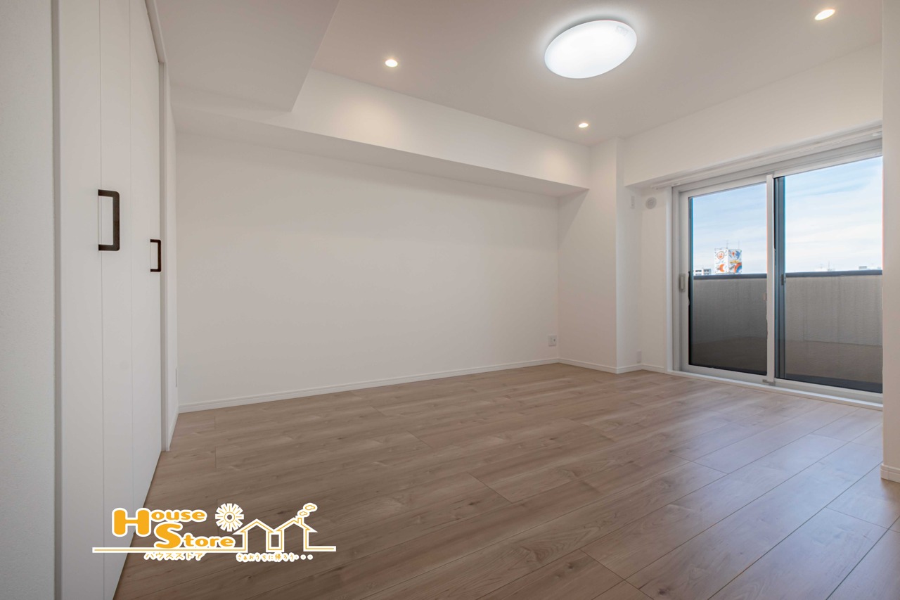 西向きのバルコニーに面し、穏やかな陽光を感じられる洋室。シンプルな空間設計でアレンジもしやすく、リビングからの動線も良好な使い勝手の良いお部屋です。