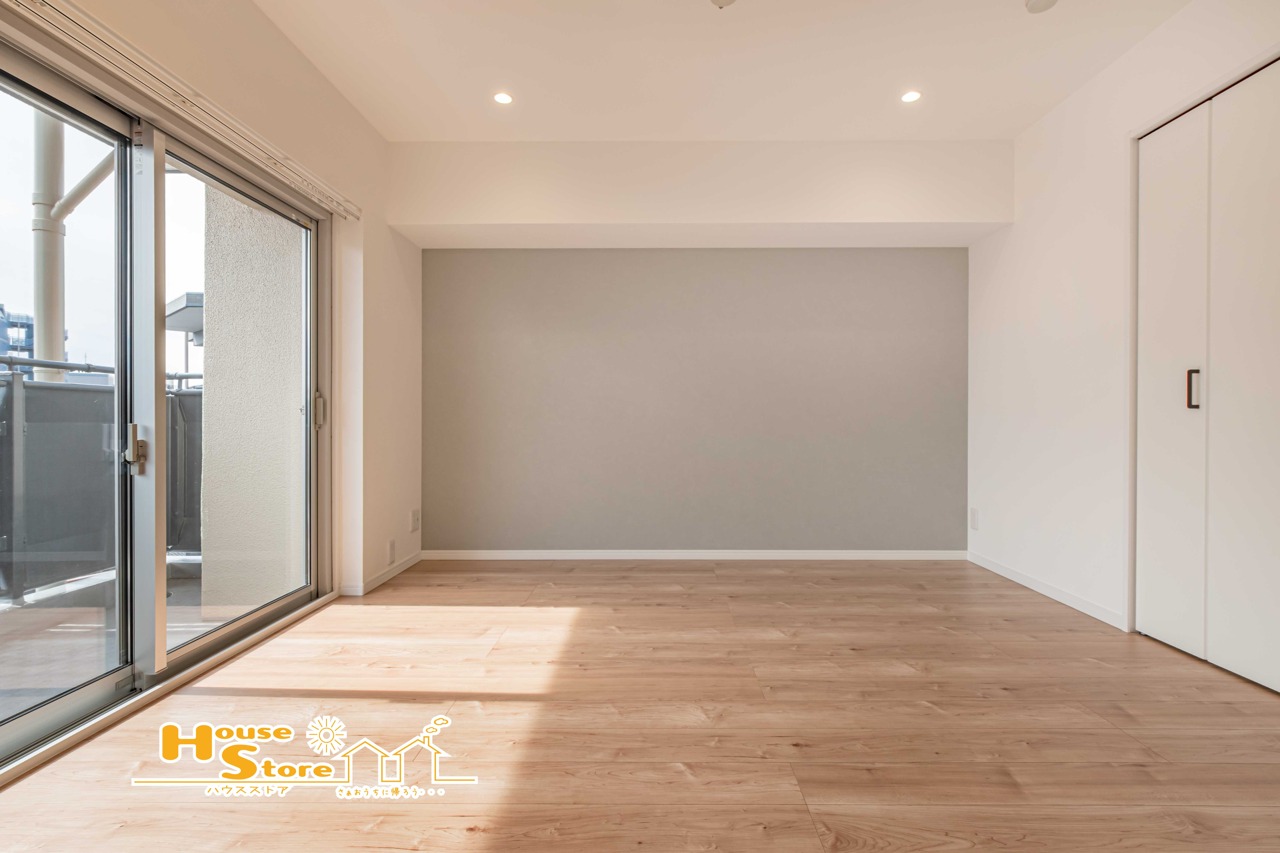 リビング隣接の洋室は、南向きでバルコニーにつながる開放的な空間。アクセントクロスが空間に彩りを添えています。