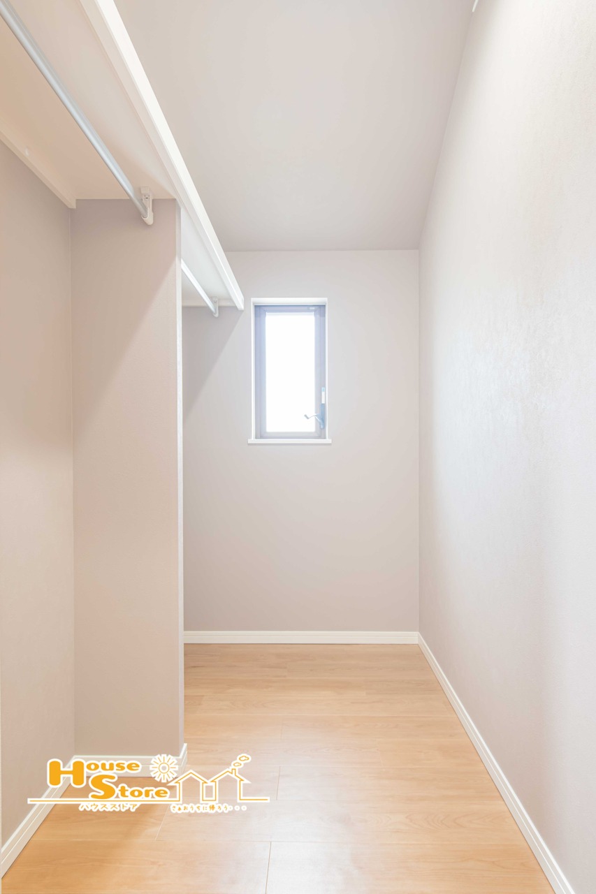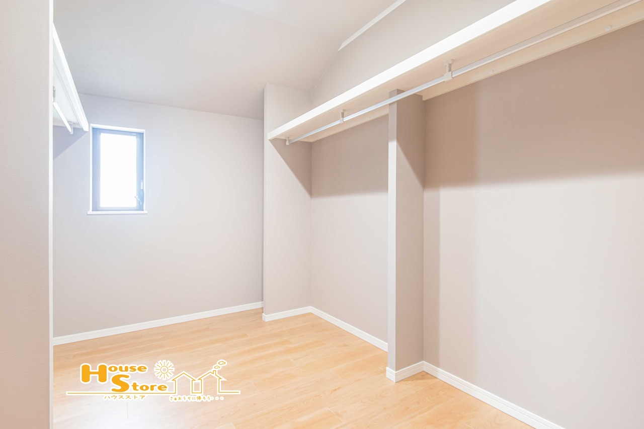 約1.5帖の納戸にはハンガーラックが備え付けられており、収納力も十分。季節外れの衣類や、普段使わない大型の荷物など、かさばるお荷物もすっきりと片づけることができます。