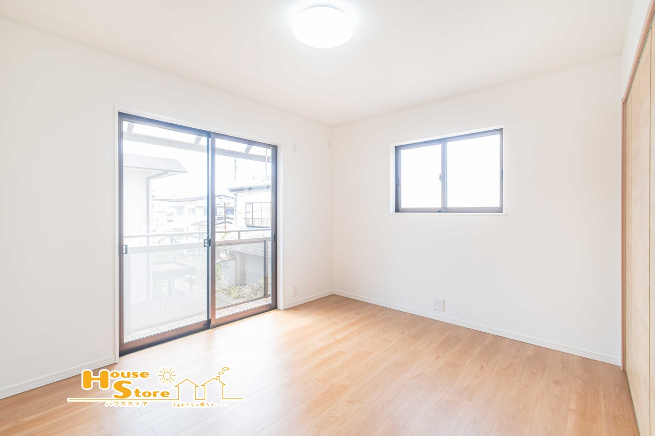 2階のお部屋はバルコニーに面しており、より開放的な空間としてお過ごしいただけます。南側の大きな窓からは自然光がたっぷりと差し込み、室内を明るく照らします。また、二方向に窓があるため風通しも良く、爽やかで快適な空間が広がります。