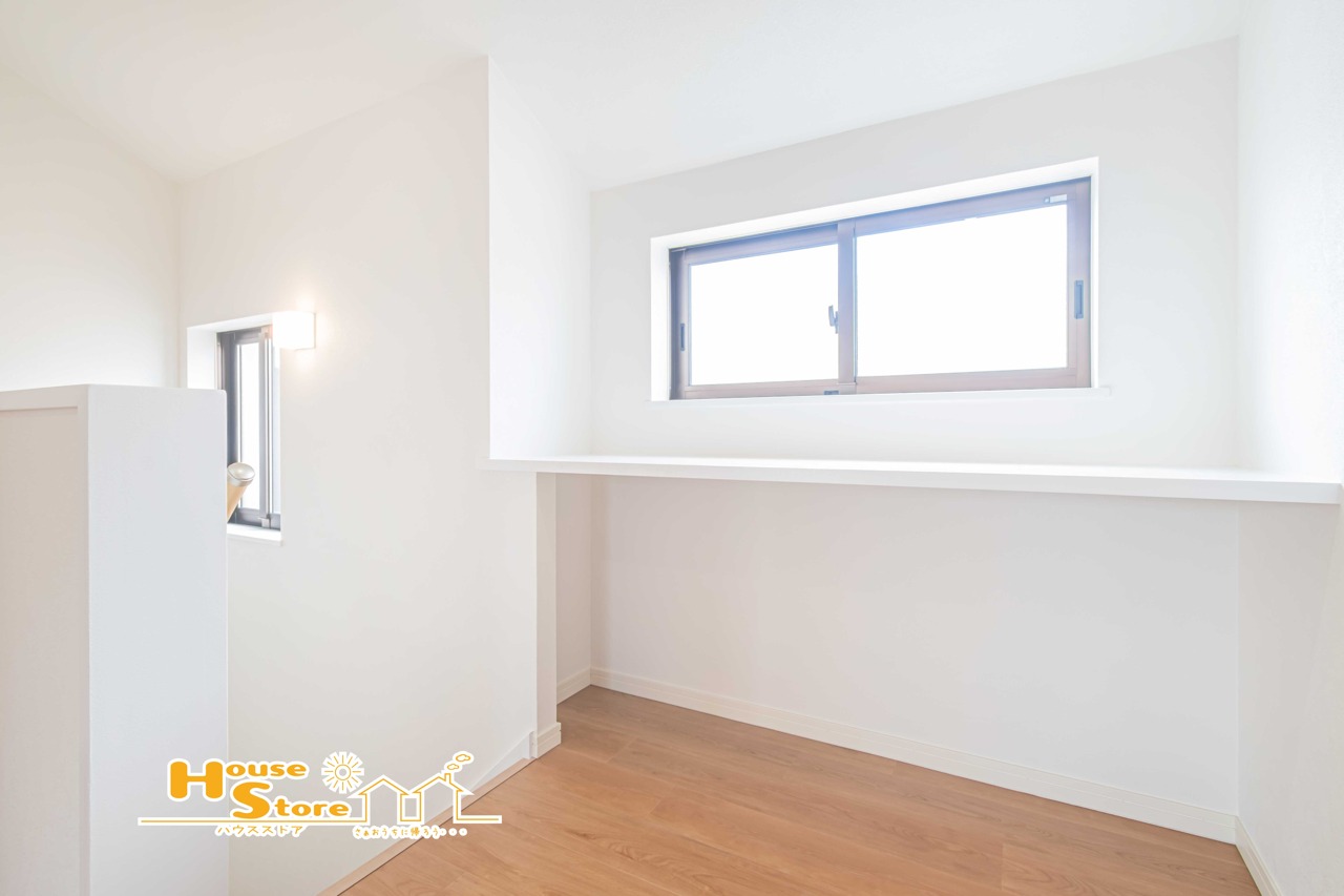階段を上がった先には、カウンター付きのゆとりあるホールスペースが広がります。ご家族で使えるワークスペースや趣味の場としても活用でき、日々の暮らしにゆとりと彩りを添える便利な空間です。