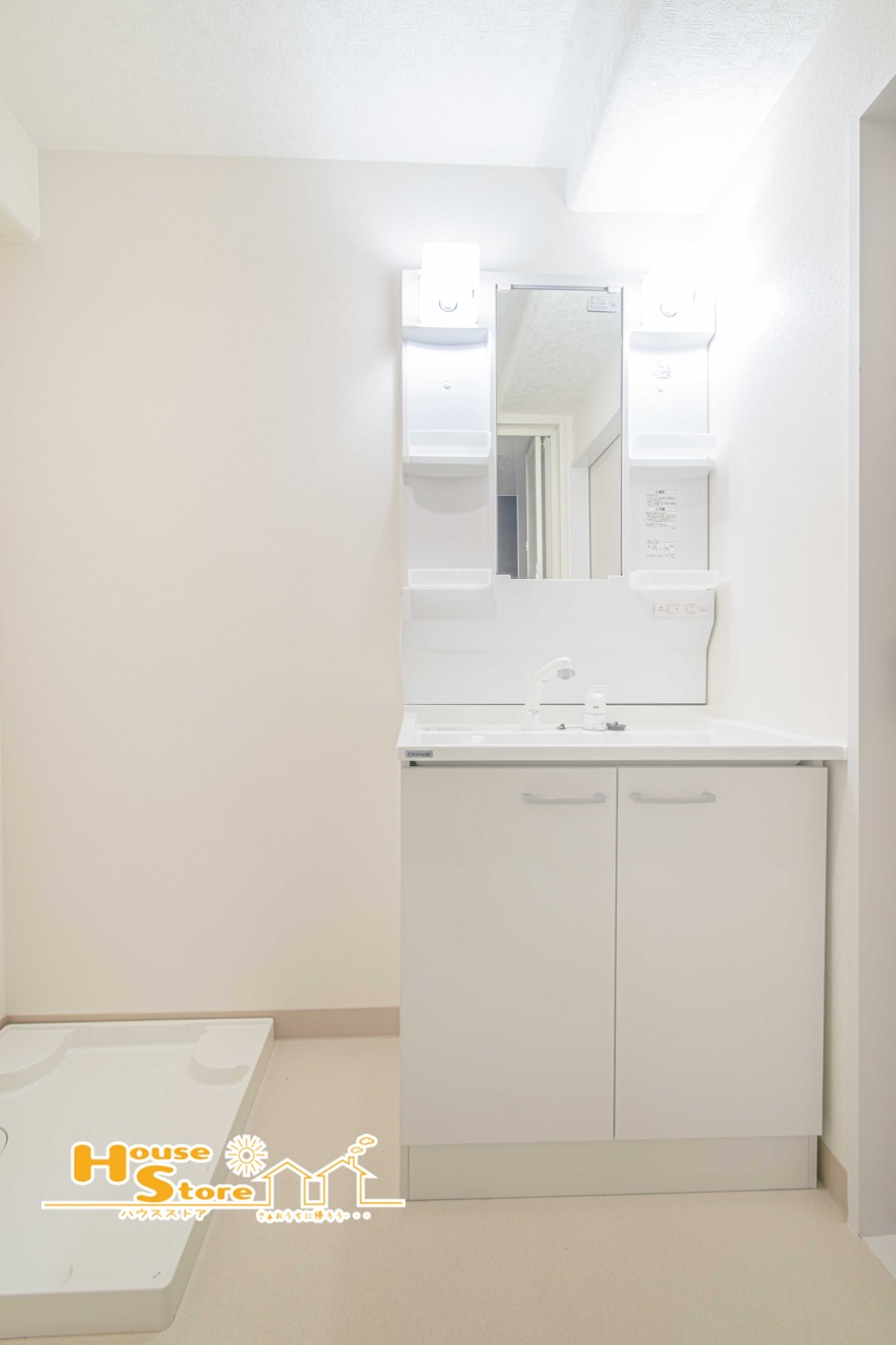 ゆとりの広さを確保した洗面室は、清潔感あふれる洗面化粧台に収納スペースを設けて身支度に忙しい朝もスッキリと使用することができます。