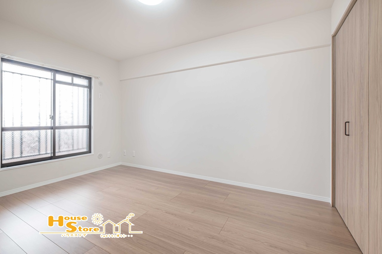 リビング隣接の洋室は、バルコニーに面した南向きの明るい空間。リビングとの行き来もしやすく、使い勝手の良いお部屋です。
