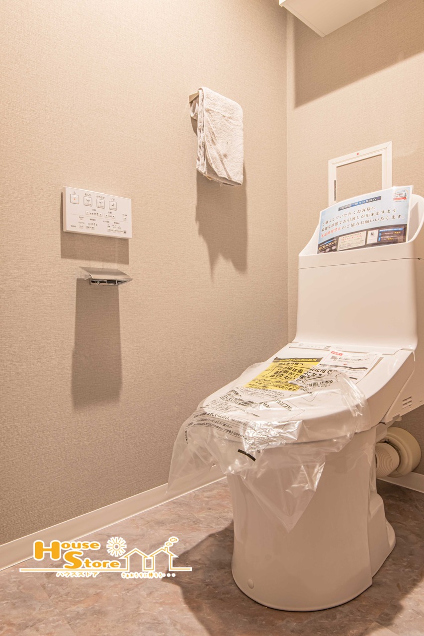 清潔感あふれるトイレ空間。温水洗浄便座を備え、毎日を快適にお使いいただけます。