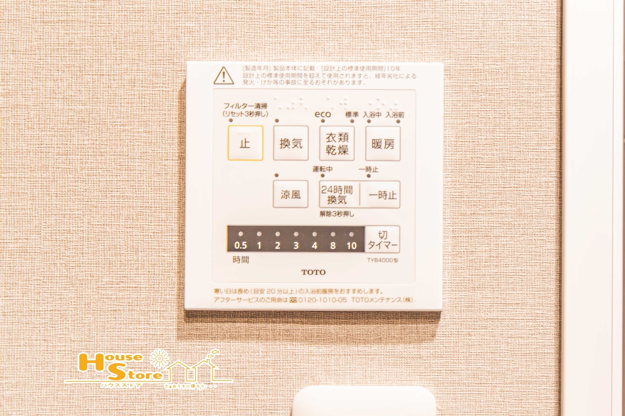 浴室換気乾燥暖房機付き。梅雨時期の洗濯物乾燥や冬場のヒートショック対策にも役立ちます。